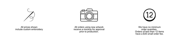 All artwork is placed center front for headwear and left chest for apparel (unless unavailable) unless otherwise requested